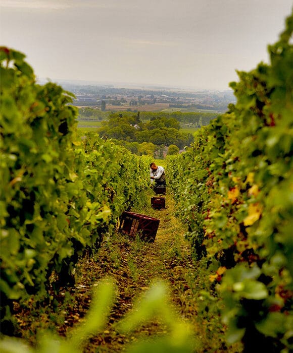 Maison Edouard Delaunay bezit bijna geen eigen wijngaarden, maar werkt met uitzonderlijk vakmanschap en partnerschap. Laurent koopt uitsluitend handgeplukte druiven van zorgvuldig geselecteerde wijnbouwers in de buurt, met wie langdurige samenwerking is opgebouwd. Dit stelt het huis in staat om te kiezen uit de mooiste appellations, tot en met Griottes‑Chambertin, en daarbij telkens de beste druiven te selecteren.